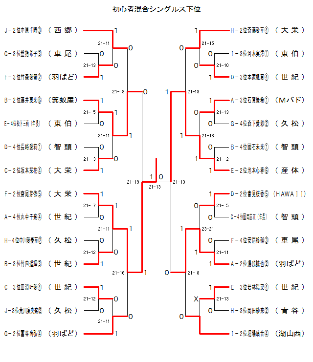 | XSBK-8 | Mバド | A−3位石賀優希@ | 1 | 21-13 | 0 | G−4位森下愛彩A | 久松 | |