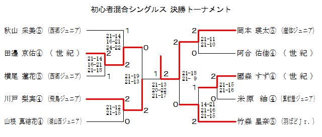 | 初心者混合シングルス Jブロック | 米原 | 荒川 | 中原 | 順位 |